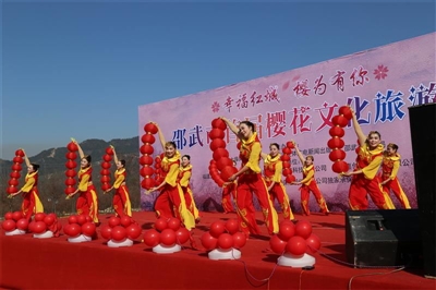 首屆櫻花文化旅游節(jié)開幕(劉建飛 攝) ? 探訪閩北美麗鄉(xiāng)村的腳步,恰與丁酉年小年不期而遇,掃塵土、貼窗花、放鞭炮、送灶王。在“二三鞭炮入窗來,訝覺新春序幕開”的氛圍中,走進充滿浪漫情調的休閑之地,一個時尚與傳統(tǒng)共存,歷史文化與現代潮流相得益彰、互為輝映的地方。它便是邵武的櫻花特色小鎮(zhèn),坐落在大埠崗鎮(zhèn)境內,離邵武市區(qū)僅30余公里,汽車行程約半個小時。
