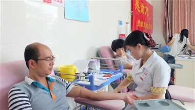 ??? 本網訊?? 6月14日是世界獻血者日,市衛計部門的90多名志愿者來到南平市中心血站邵武采血點無償獻血(見圖)。(洪悅 陳玉萍)