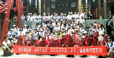 ? 本網訊?? 7月16日,104名臺灣攝影家和攝影愛好者走進和平古鎮探訪拍攝,并和儺舞表演演員拍照留念。他們從7月14日開始,在福州、南平兩地開展為期六天的攝影創作活動,走訪福州三坊七巷、南平市武夷山及邵武和平古鎮等地,用鏡頭聚焦新福建,聚焦閩都文化、朱子文化與茶文化。(柯明河)