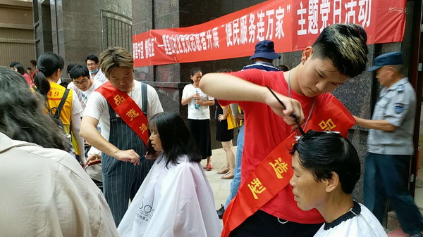 ??? 本網訊?? 8月1日,邵武市孝心養老服務中心走進鯉魚山社區開展義診、義剪,免費維修家電、放電影等活動。(吳煒)