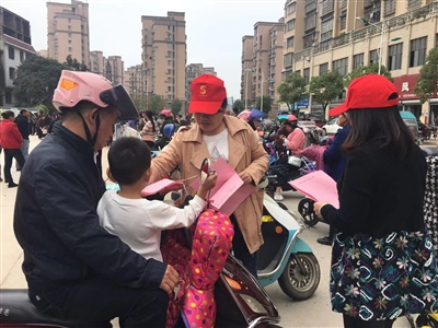 本網訊 10月24日上午,通泰街道三里亭社區在邵武市第二實驗小學、邵武六中城南校區校門口開展“小手拉大手”交通勸導活動。呼吁廣大市民共同監督小車駕駛人遵法守規,協助制止違法駕駛,消除交通安全隱患。 (高淑萍)