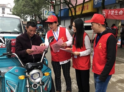 本網訊 近日,和平鎮開展掃黑除惡宣傳活動,向過往群眾發放宣傳單,發動群眾積極檢舉揭發農村黑惡勢力。圖為志愿者向群眾講解掃黑除惡相關知識。