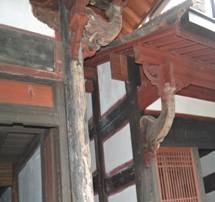 古縣衙象鼻斗拱 □丁建發 在和平古鎮東南隅有一清乾隆三十四年建筑——縣丞署。縣丞署俗稱“分縣衙門”,坐西朝東,現有建筑面積約500余平方米,兩進廳,五開間,構架以抬梁式與穿斗式結合,用材碩大,保留明代建筑遺風,氣派宏偉壯觀。 與一般民宅不一,和平古縣衙沒有后門。想必衙門是明辨是非曲直的重要場所,是統治階級維護正常社會秩序的工具,是講“道”論“理”的地方,且“道理”是非關乎治國之“禮”。悖“理”的行為在統治階級看來并不只是一般地違反社會道德或習慣,而是對于整個宇宙之自然秩序的破壞。不開后門就是為了不違“理”,進而不違“禮”。懲惡揚善維護道德秩序是衙門的重要職責,不開后門就是警示罪犯,想走“后門”無門!眾觀歷朝歷代,開國統治初期吏治嚴厲,司法公正嚴明,社會和諧遵法守禮,而到后期腐敗沒落,才會有“衙門八字開,有理無錢莫進來”。在《紅樓夢》第四回《葫蘆僧亂判葫蘆案》中,雨村由勃然大怒審案到被門子一眼色而退堂審案,這顯然不是統治者的初衷。統治者總是自覺地扮演著自然秩序維護者的角色。 正因有“禮”,和諧乃是中華文化的最高價值,守“禮”也是統治者的最高職責。因而在建筑細節的處理上也顯得別具一格。 斗拱是和平古縣衙建筑的一大特色,采用的是“象鼻斗拱”繁雜工藝,其意義在于,因和諧司法而有“禮”,進而天下太平,太平有“象”。“斗”與“拱”是中國古建的一個基本構件,它位于柱與梁之間,由屋面和上層構架傳下來的荷載,要通過斗拱傳給柱子,再由柱傳到基礎,因此,它起著承上啟下,傳遞荷載的作用;它向外出挑,可把最外層的桁檀挑出一定距離,使建筑物出檐更加深遠,造形更加優美、壯觀。這也說明了古代中國人基于天人合一的思維模式,試圖以司法及道德等手段追求自然和諧的努力。這種理念,在縣丞署門口仍存的一塊“罰站石”再次得到印證。 縣衙堂前有一塊罰站石,質地較軟的麻石,存有三個腳印,特別引人注目。宋代理學家程頤在《周易程氏傳》中說:“自古圣王為治,設刑罰以齊眾,明教化以善其俗,刑罰立而后教化……。”刑罰的目的就是殺一儆百,以儆效尤,將犯罪罰站石“示眾”,且不得超越尺度,這或許就是畫地為牢。然為何會有三個腳印?想必是讓犯罪長久保留一個定式,久而久之會身心疲憊,三個腳印說明犯人可以更換雙腳,但卻不能超越此石頭范圍。罰犯人是為了“存天理”而滅其“惡欲”,進而教化,卻是不失人性化的懲戒。然而總有罪犯以身試法,視司法如兒戲,司法威嚴如何得以體現呢? 縱觀衙門廳堂,抬梁式構造如一頂官,四四方方,不偏不倚,又如同一頂官轎子。試想,做賊心虛的罪犯尚未見到青天老爺長跪于“官轎”之下,加之兩邊六衙役手揮殺威棒從內心發“威武”之聲,深沉鏗鏘不絕于耳,早已膽戰驚心并給予極大心理震撼,司法的權威與神圣于無聲之處得以傳達體現。至今還有一塊被殺威棒敲得斑駁的老方磚存于廳堂,向游客們細訴當年之“威武”。 |