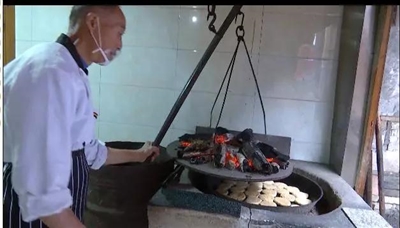 這口炭烤燒餅的鐵鍋已有一百多年歷史