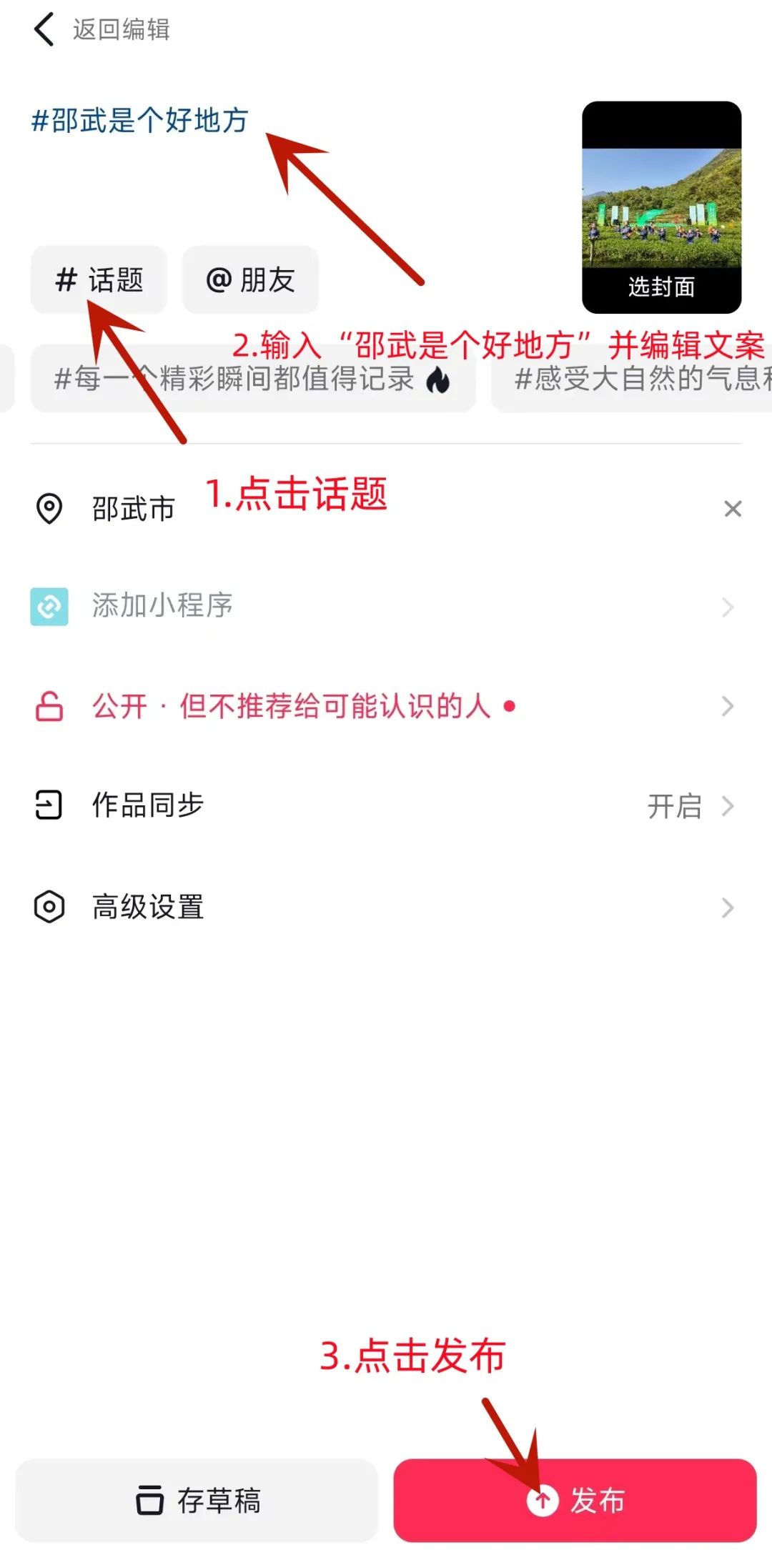 五一小長假即將來臨,宅家太久的你是否計劃外出放飛心情?無需遠游,邵武“五朵金花”讓你樂享五一假期!為充分展示邵武美食美景和邵武青年風采,團市委與市文體旅游局特向全市廣大青年朋友和抖音達人們發出活動倡議:五一假期期間(4月29日-5月3日),通過抖音APP添加話題【#邵武是個好地方】,積極發布宣傳推介關于邵武的短視頻(內容包括云靈山、和平古鎮、大埠崗櫻花小鎮、天成奇峽、金坑紅色小鎮等“五朵金花”、邵武美景美食、民俗文化等),共同展示邵武的好山好水,為擦亮“邵武是個好地方”城市名片貢獻一份力量!