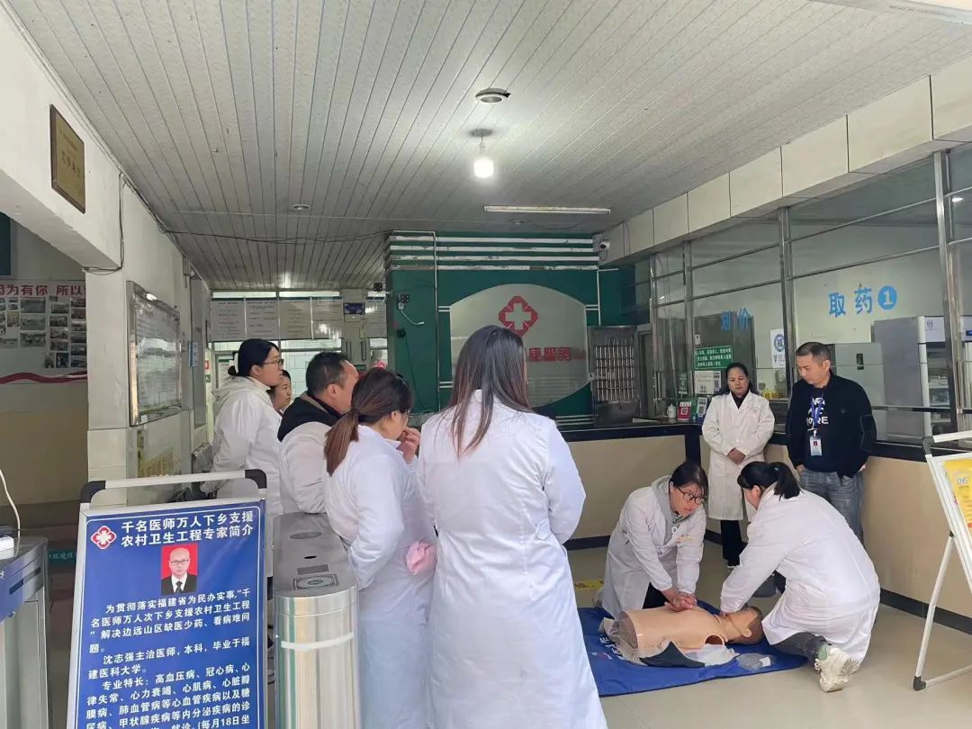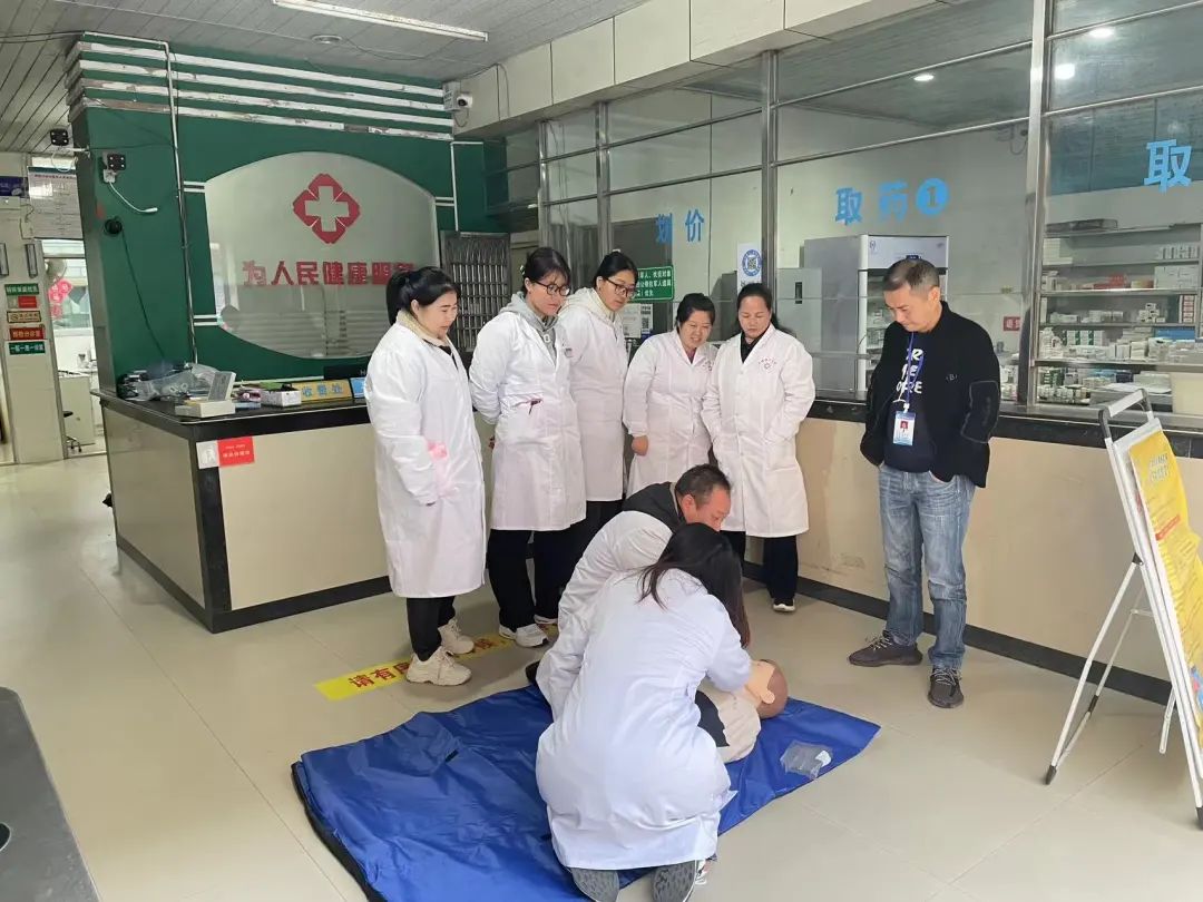 “當心臟呼吸驟停,我們要把握黃金4分鐘,時間就是生命……”活動現場,衛生院阮院長利用“人體模型”對 “心臟驟停患者”實施意識判斷、心肺復蘇、人工呼吸、心電監護等急救措施。阮院長詳細講解了急救前的環境評估、現場施救注意事項、心肺復蘇的動作要領,強調了黃金四分鐘的重要性。參加培訓的醫護人員認真聆聽,仔細觀察,輪番上陣進行實操演練。