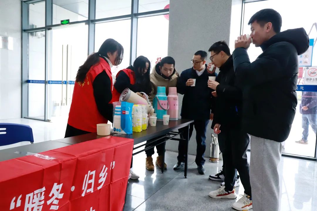 當天上午,記者在志愿服務站看到,雖然天氣寒冷,志愿者們的熱情不減,積極熱心地向過往旅客送上新年祝福和一杯杯熱茶。