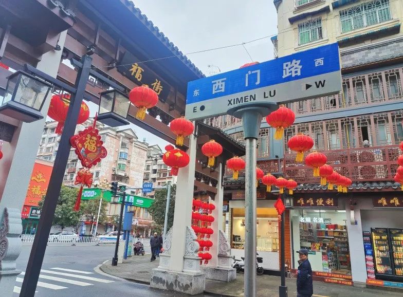 張燈結彩年味濃,喜慶祥和過新年。在通泰街道西門“福”街,火紅的燈籠和吉祥的“福”字點綴在古色古香的門樓上,濃濃的節日氛圍撲面而來。街上的市民、游客攜親帶友,絡繹不絕,從外地返鄉的劉女士和她的姐妹們對“福”街豎起大拇指:“我們又多了一個拍照打卡的好地方!”