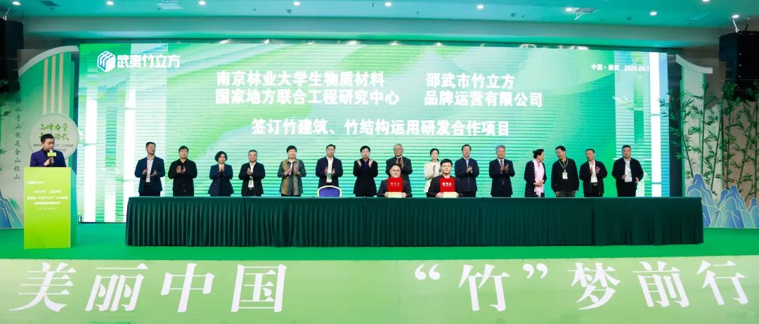 邵武市市長郭緋紅在致辭中指出,邵武市林竹資源十分豐富,是福建省四大重點林區之一。近年來,邵武市始終牢記囑托,把竹產業作為富民強市的重點產業,形成了竹快消品、竹家居兩條完整產業鏈,成為全省竹原料集散地和竹材加工生產基地。邵武市還搶抓“以竹代塑”機遇,建成了全國規模最大、竹產業應用場景最全、科技含量最高的“竹立方”全竹產業發展融合平臺,強化了產業鏈上下游的協同發展,把小竹子做成共富鏈。希望各位領導、專家、企業一如既往地關心、支持邵武,支持“武夷竹立方”區域公共品牌建設,深度參與到南平竹產業高質量發展中來,共謀竹產業發展美好明天、共襄竹產業發展盛舉、共享竹產業發展成果。