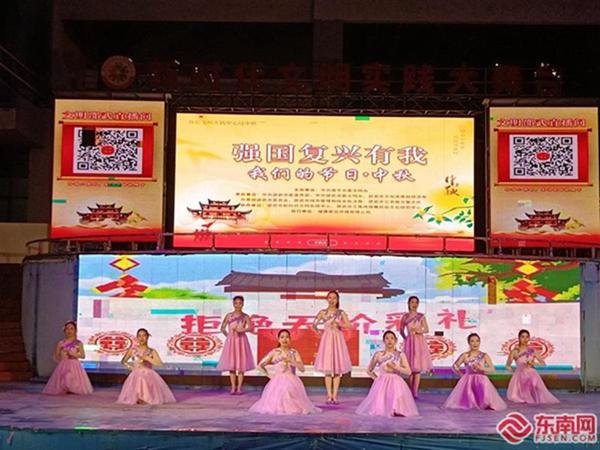 現場節目表演 東南網記者 肖練冰 攝 精彩絕倫的節目輪番上演,傳統三角戲《磨豆腐 合家歡》、舞蹈《品茶 賞月》、小品《中秋之約》、爵士舞《熱辣滾燙》、歌曲《但愿人長久》、音樂快板《抵制天價彩禮》、歌伴舞《再別邵武》……形式多樣的文藝節目受到了現場觀眾的一致好評。