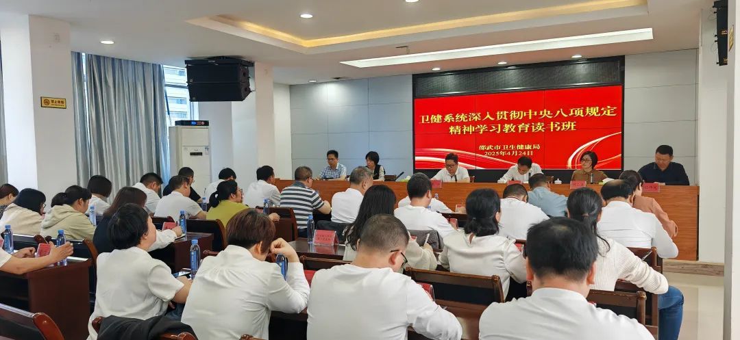 本網訊 4月24日至25日,市衛健局舉辦全市衛健系統深入貫徹中央八項規定精神學習教育讀書班。市衛健局黨委班子成員,市直各醫療衛生單位、社區衛生服務中心院長(主任),局黨委所屬各黨組織書記及局機關各股室負責人參加會議。