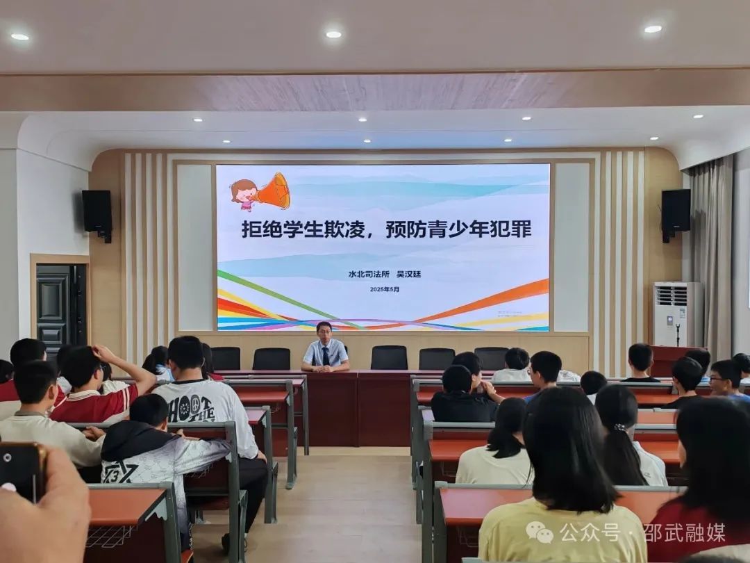 本網訊 為進一步加強對青少年群體的法治宣傳力度,預防校園欺凌行為,引導未成年人樹立知法、懂法、守法意識,助力營造安全和諧、團結友愛的校園環境。5月19日下午,水北司法所聯合水北鎮平安辦、故縣派出所、故縣村走進水北中學,開展了一場以“拒絕學生欺凌,預防青少年犯罪”為主題的專題講座。