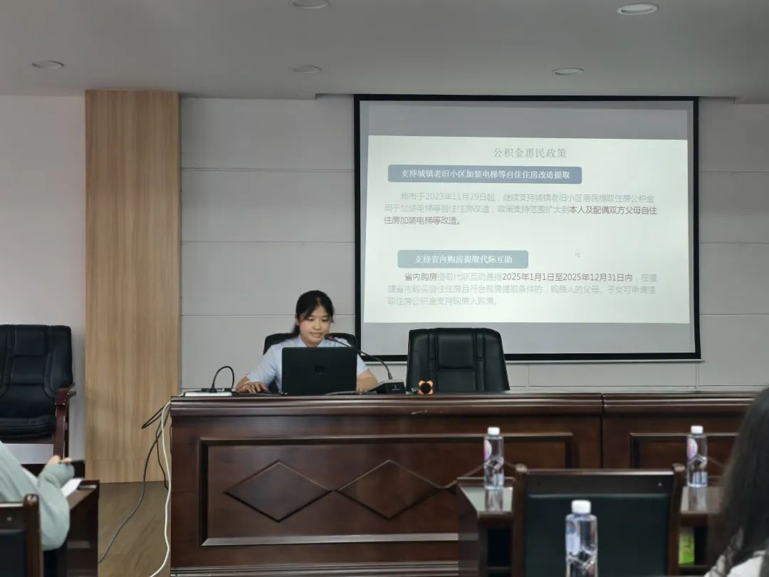 政策解讀宣講現場,住房公積金邵武管理部工作人員向繳存單位傳達《福建省住房公積金繳存管理辦法》,并逐條解讀,針對現場關注的公積金政策調整的普惠力度、住房貸款額度動態調整機制、多子女家庭支持政策以及老舊小區改造加裝電梯提取等一些常見問題進行了答疑解惑。