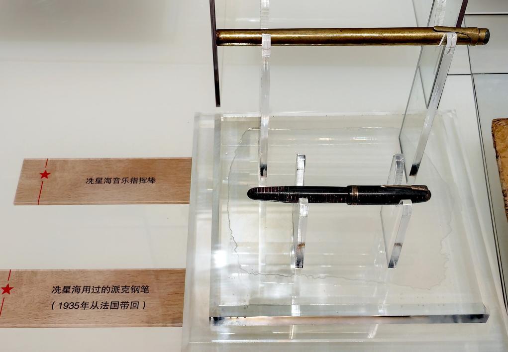 延安文藝紀(jì)念館展出的冼星海使用過的指揮棒和鋼筆。新華社記者 孫正好 攝 時(shí)光荏苒,斗轉(zhuǎn)星移。今天的延安文藝紀(jì)念館中,泛黃的照片、珍貴的文物,再現(xiàn)了那段崢嶸歲月。展柜中,一支產(chǎn)自法國(guó)的銅質(zhì)指揮棒引人關(guān)注,冼星海曾用它多次指揮《黃河大合唱》的演出。 這位曾任魯藝音樂系主任的人民音樂家,是當(dāng)年延安璀璨群星中的杰出代表。 1939年早春,延安西北旅社的窯洞里,詩(shī)人光未然深情朗誦著長(zhǎng)詩(shī):“朋友!你到過黃河嗎?你渡過黃河嗎?你還記得河上的船夫,拼著性命和驚濤駭浪搏戰(zhàn)的情景嗎?” 聽眾中,冼星海猛然站起來,上前一把抓住寫有長(zhǎng)詩(shī)的紙張:“我有把握把它譜好!” 簡(jiǎn)陋的窯洞中,冼星海用六天六夜完成了《黃河大合唱》的全部譜曲。1939年4月,首演大獲成功。周恩來曾為之題詞:“為抗戰(zhàn)發(fā)出怒吼,為大眾譜出呼聲!” 自此,這部樂曲氣勢(shì)磅礴地回蕩在大河上下。陜西延安干部學(xué)院教授劉夢(mèng)說,僅1940年,《黃河大合唱》就在晉察冀邊區(qū)演出百余場(chǎng),它以黃河寓意民族形象,向全中國(guó)人民發(fā)出了戰(zhàn)斗的強(qiáng)音。