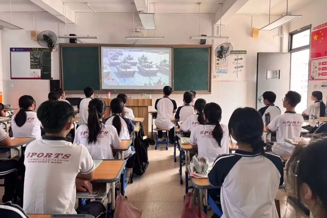 當日,各班班主任準時組織學生有序就座,等待閱兵儀式的開始。科任老師全程陪同,與學生們一同觀看,并適時進行引導教育,讓學生們更好地理解閱兵儀式的意義。