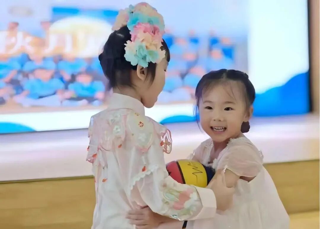 活動現場,濃郁的節日氛圍撲面而來。孩子們身著各式漢服,宛如穿越古今的小精靈。他們有的在“猜燈謎”“投壺”“玉兔歡樂跳”等傳統游戲中玩得不亦樂乎;有的則與大班的哥哥姐姐或爸爸媽媽一同投入創作,繪制團扇、巧制燈籠、用黏土捏出一個個獨具匠心的“月餅”,在動手實踐中體驗勞動的快樂與成就感。一場精彩的漢服走秀和溫馨的手勢舞表演,更將節日的歡愉與童真展現得淋漓盡致。